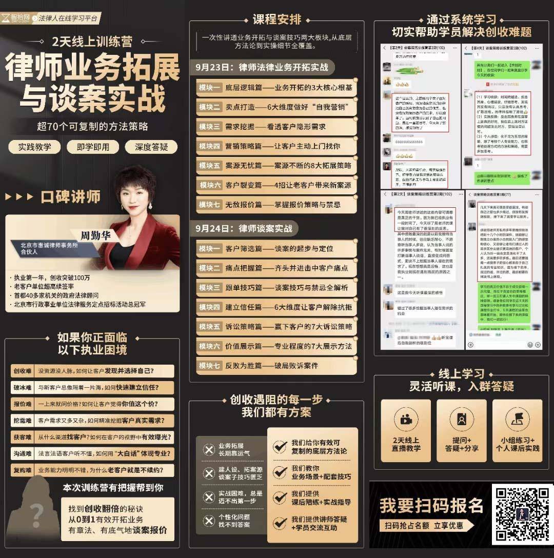 【会员专享】律师业务拓展与谈案实战训练营报名链接-Es 扫二维码继续学习 二维码时效为半小时
