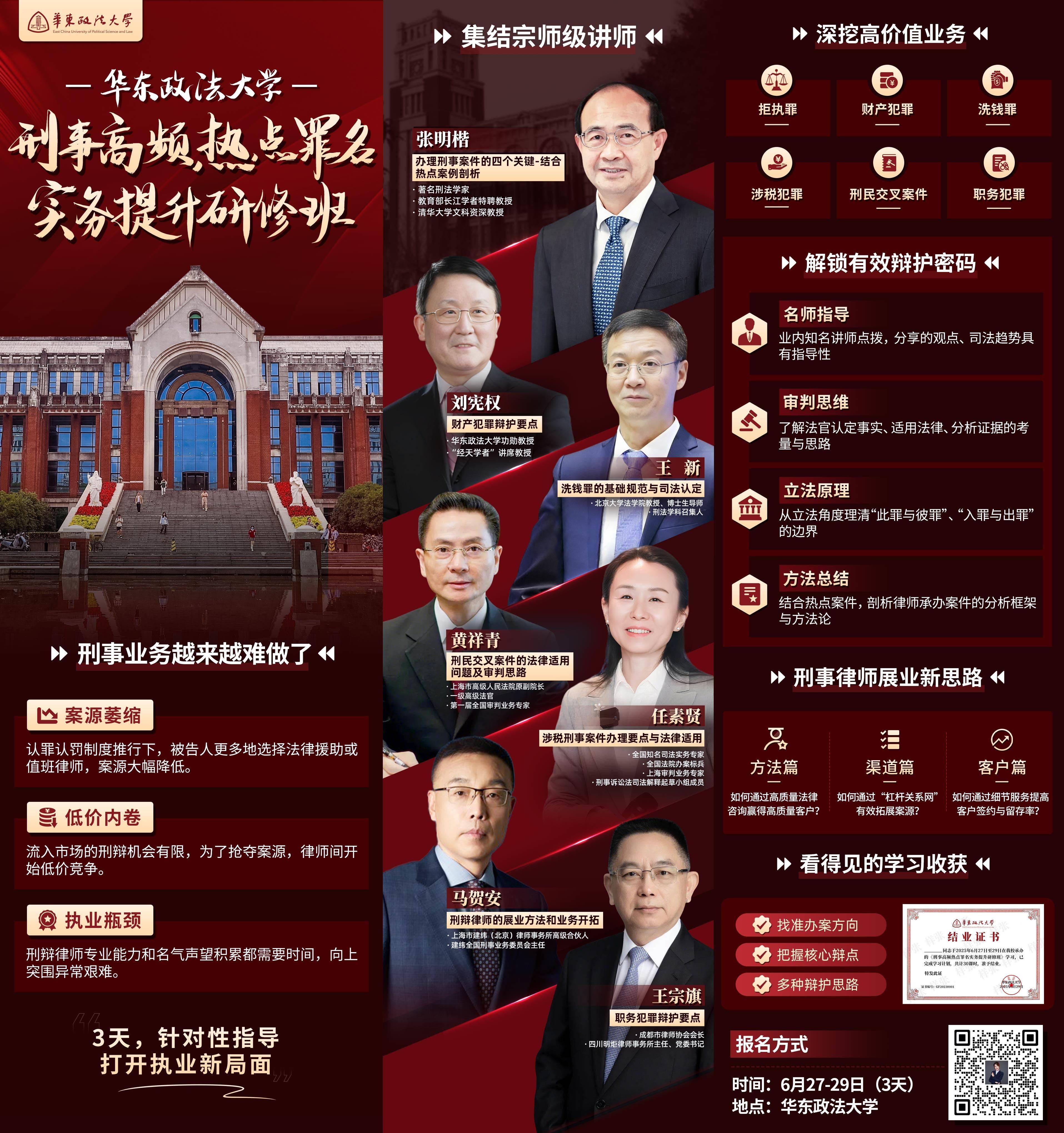 【6.27-29】华政刑事实务提升研修班 校园饭卡预定链接—Molly 扫二维码继续学习 二维码时效为半小时