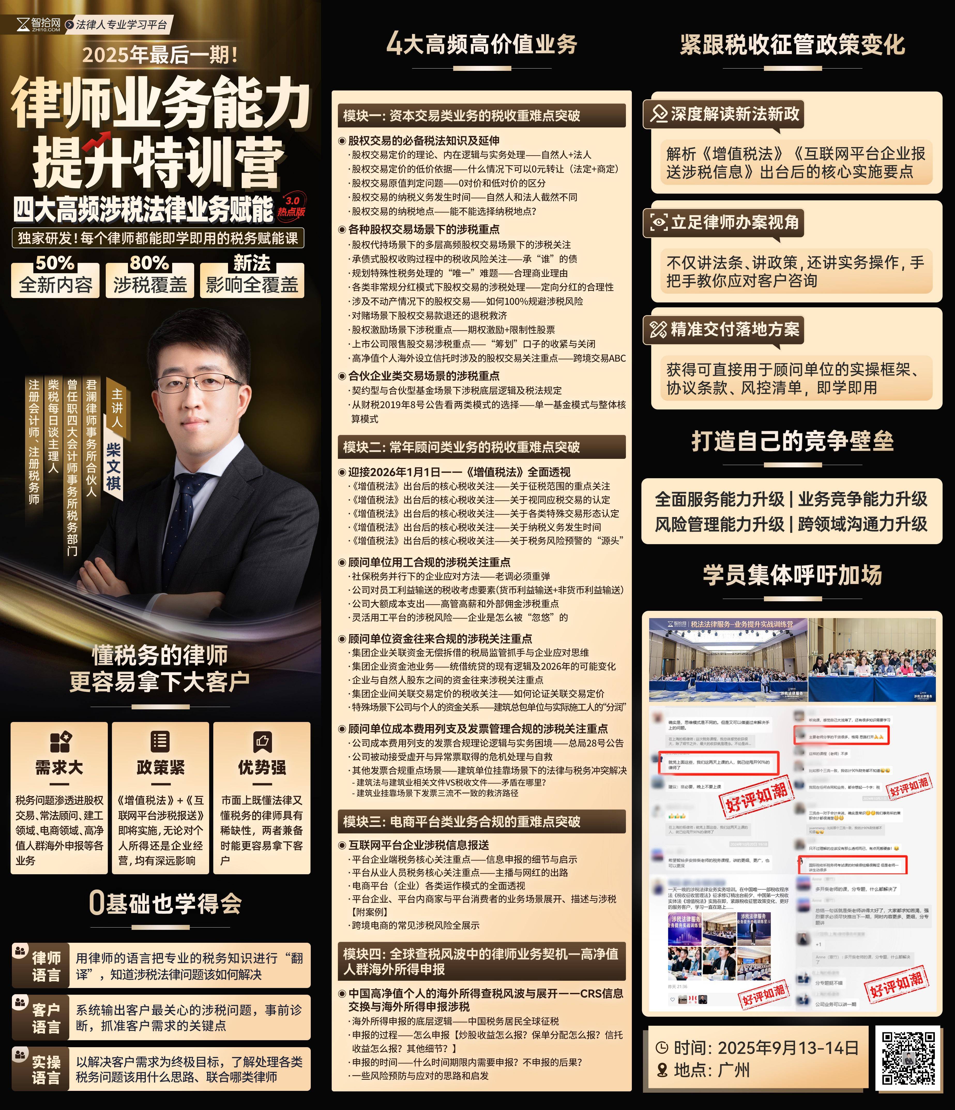 【特批】0913-广州-涉税训练营第三期报名链接-智拾网Caden 扫二维码继续学习 二维码时效为半小时