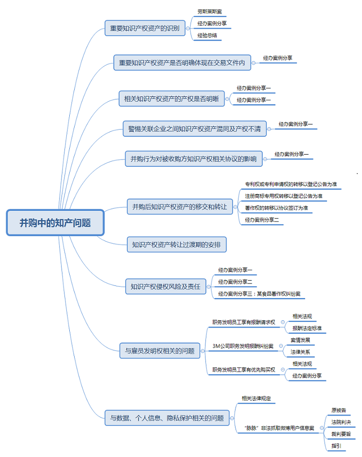1. 尤其在并购集团公司的某个主体而不是全盘并购的情况下,一定要特别关注公司之间对知识产权的安排;