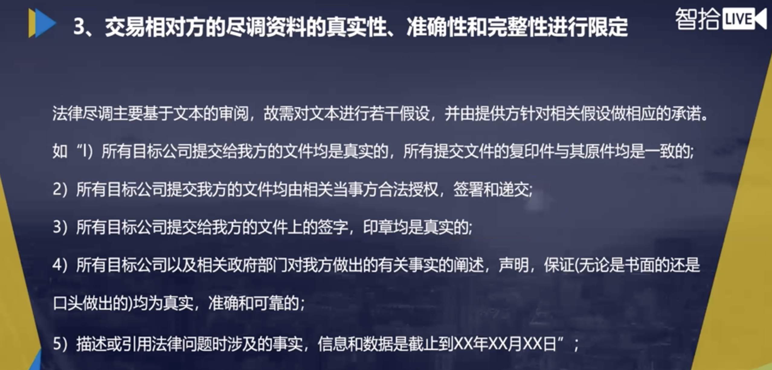 3、交易相对方的尽调资料的真实性、准确信和完整性进行限定