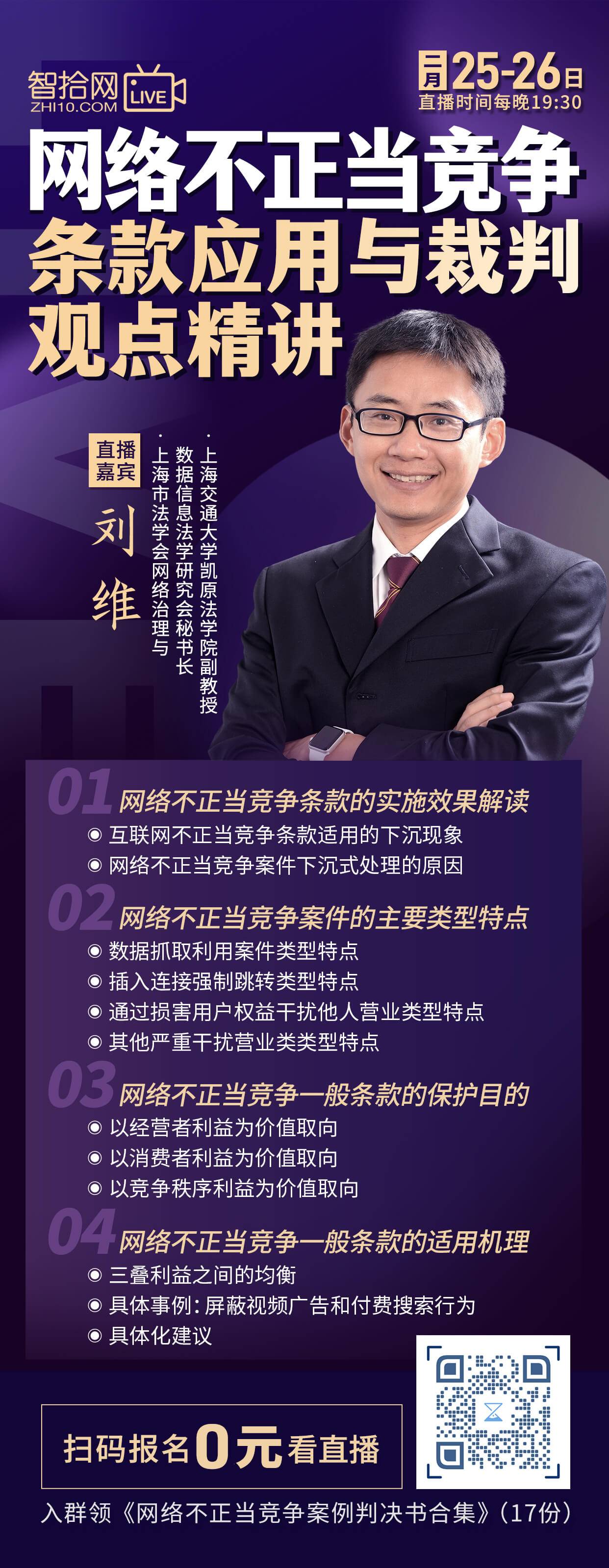 刘维:网络不正当竞争条款应用与裁判观点精讲 SVIP免费学